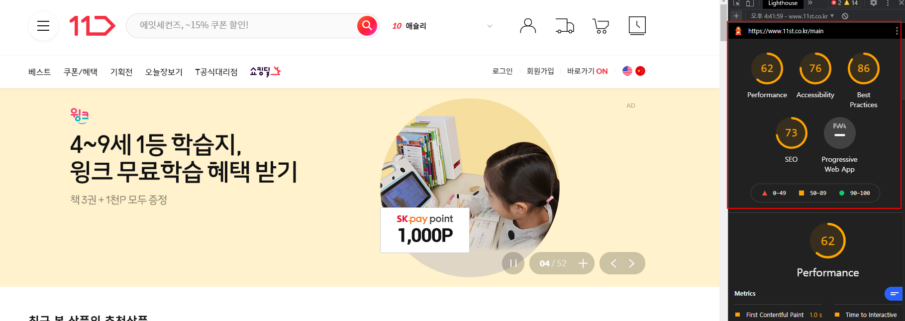 측정을 하고 싶은 사이트로 이동합니다. 저는 11번가를 예시로 하겠습니다.