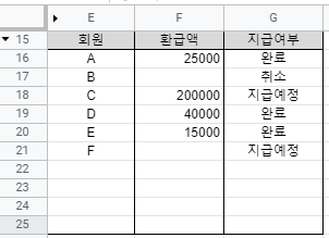 =countIF(G16:G25, "지급예정")