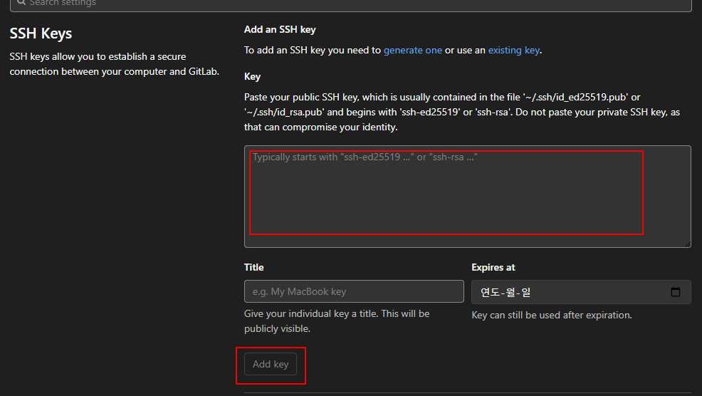 이제 내가 사용하는 gitlab으로 이동해줍니다.