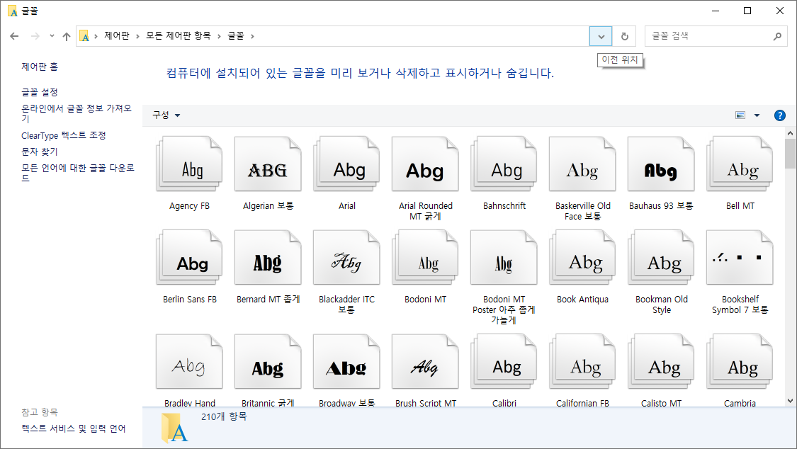윈도우 포맷하고 나서 폰트 설치하려고 하면 바로가기 설치가 안될겁니다.
