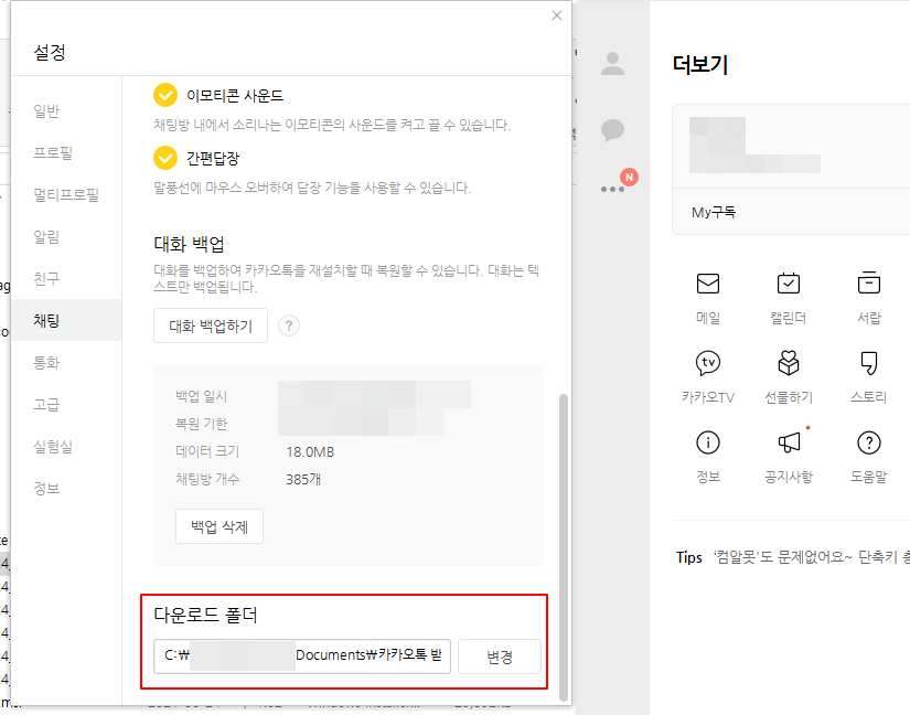 4.카카오톡 : 설정 > 채팅 탭 > 다운로드 폴더 변경