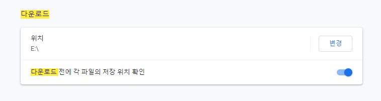 1.크롬: 내 프로필(우측 위) 선택 > 설정 > 스크롤다운 > 고급 > 다운로드 폴더 위치 변경