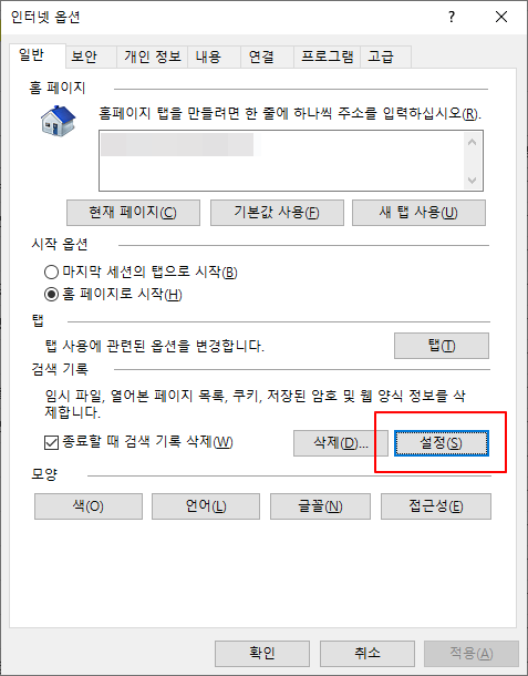 2.IE: 설정 > 일반탭 > 검색기록 > 설정 > 임시 인터넷 파일 탭 > 현재위치 > 폴더 변경