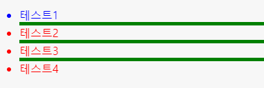 li:not(:last-child){border-bottom:5px solid green;} /*마지막 li만 아니라면 li아래 초록색 선긋기 */