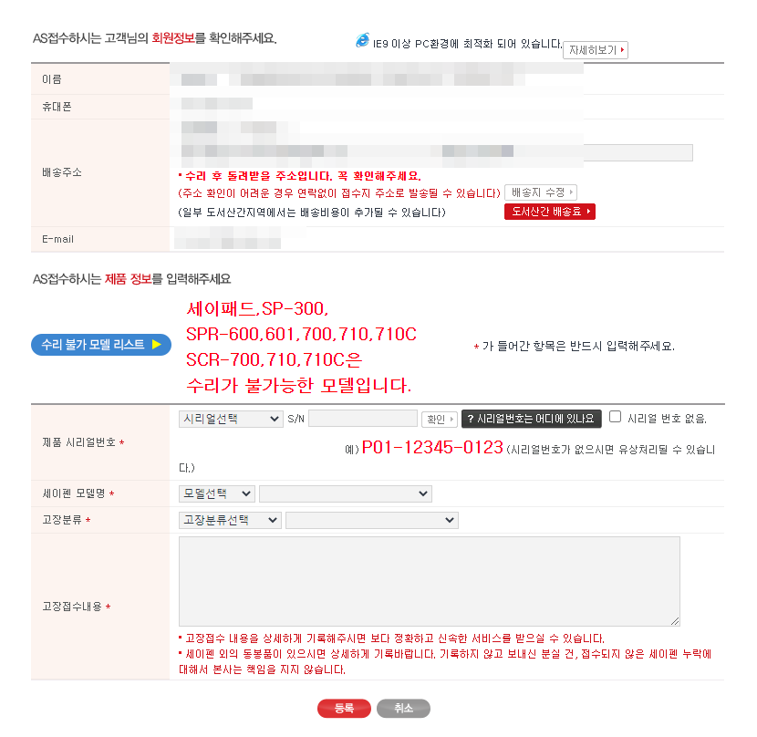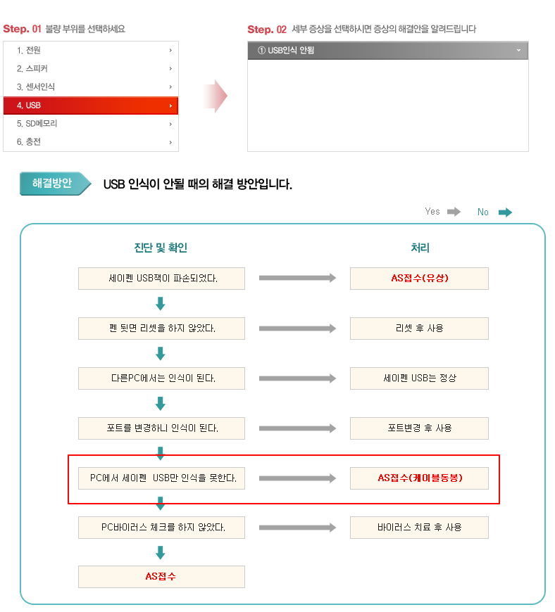 당연한 얘기겠지만, A/S 요청하기 전에 자가진단 필수로 해주세요.