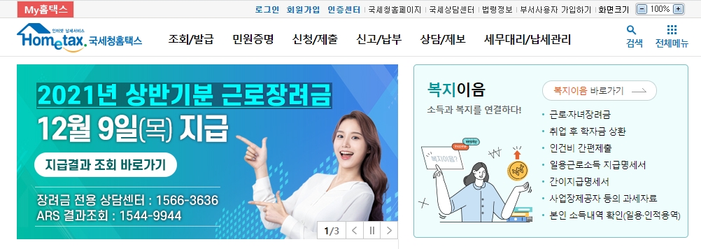 홈텍스 접속