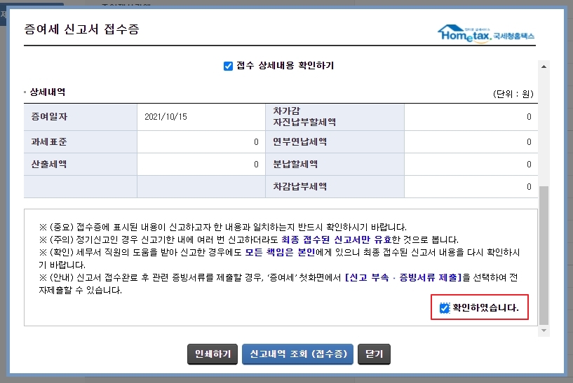 증여세 신고서 접수증 이 나오는데