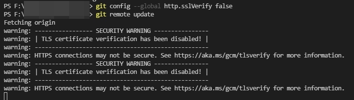 git config --global http.sslVerify false